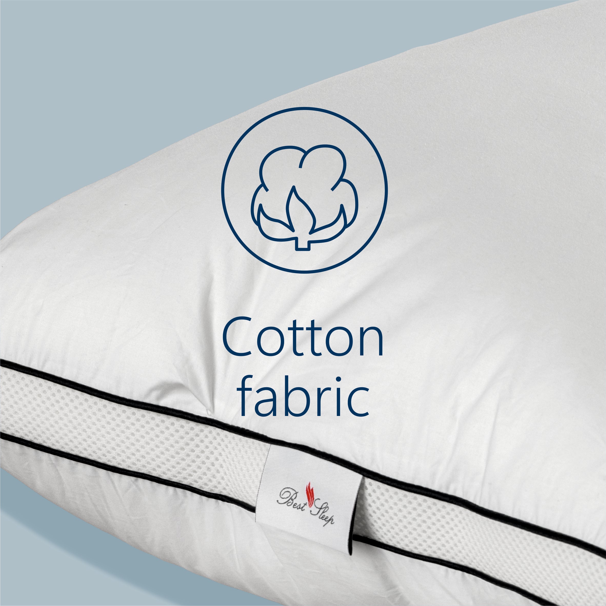 Perna Best Respira cu umplutură din fibră siliconizată este ușoară și confortabilă, oferind o senzație fină și delicată la atingere. Umplerea este realizată prin suflarea unor fibre extrem de mici în interiorul husei, metodă prin care se obține un efect asemănător pufului. Cu volum ridicat, perna asigură o susținere confortabilă a capului în timpul somnului și permite relaxarea mușchilor gâtului și a umerilor pentru a asigura un somn odihnitor, fără întreruperi. Este o alegere excelentă pentru persoanele alergice, deoarece nu reține acarieni, praf sau alergeni. Structura cu bordură laterală realizată din texțil 3D permite o distribuție uniformă a umpluturii, oferind confort constant pe termen lung și aduce un plus de respirabilitate pernei, menținând un mediu bine ventilat și uscat